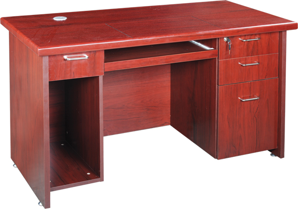 Bàn làm việc Hòa Phát ET1400A hình chữ nhật, một bên có hộc liền 3 ngăn kéo, bên còn lại có 1 ngăn kéo và khoang để CPU. Bàn sơn PU màu cánh gián và có bàn phím.